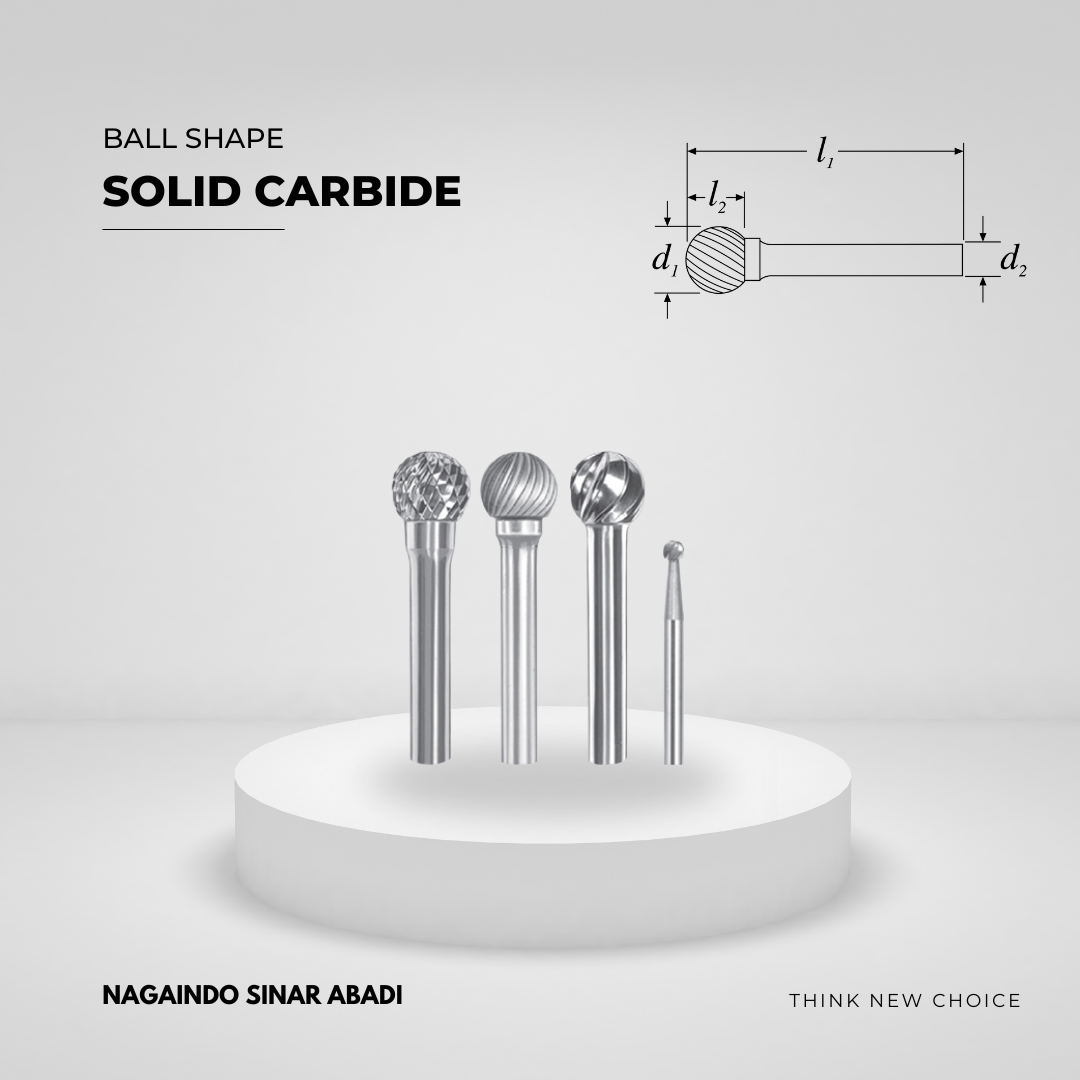 Solid Carbide Ball Shape presisi tinggi untuk grinding, contouring, deburring, dan finishing pada berbagai material, dengan ketahanan aus maksimal dan performa stabil untuk aplikasi industri.